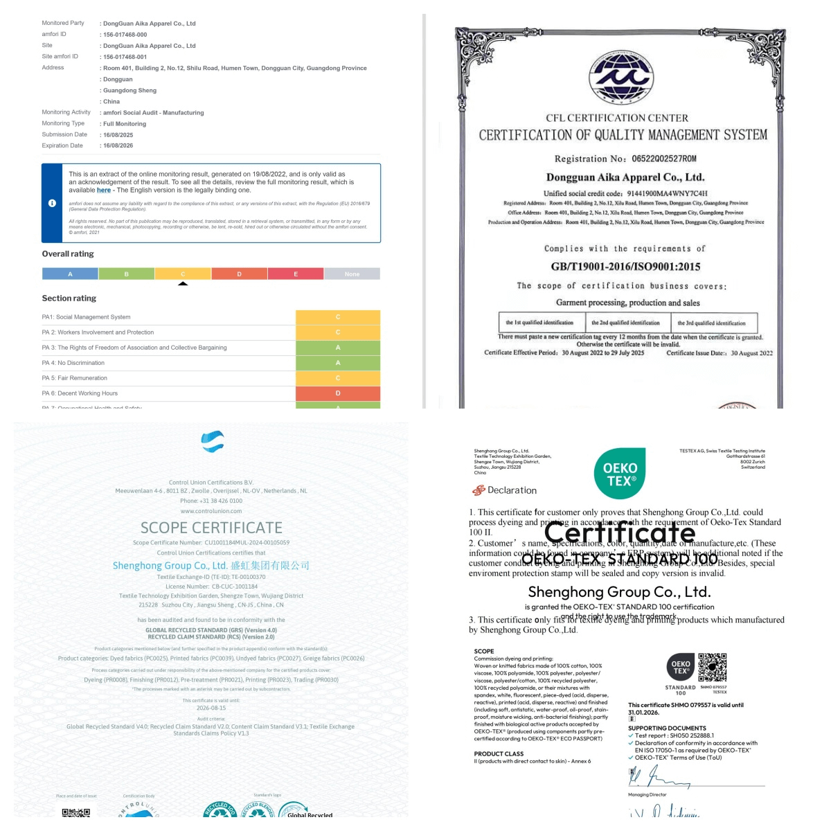 Ethical Compliance: Aika holds the BSCI (Business Social Compliance Initiative) certification, guaranteeing fair labor practices and safe working conditions. This certification is a crucial asset for brands looking to avoid supply chain risks.